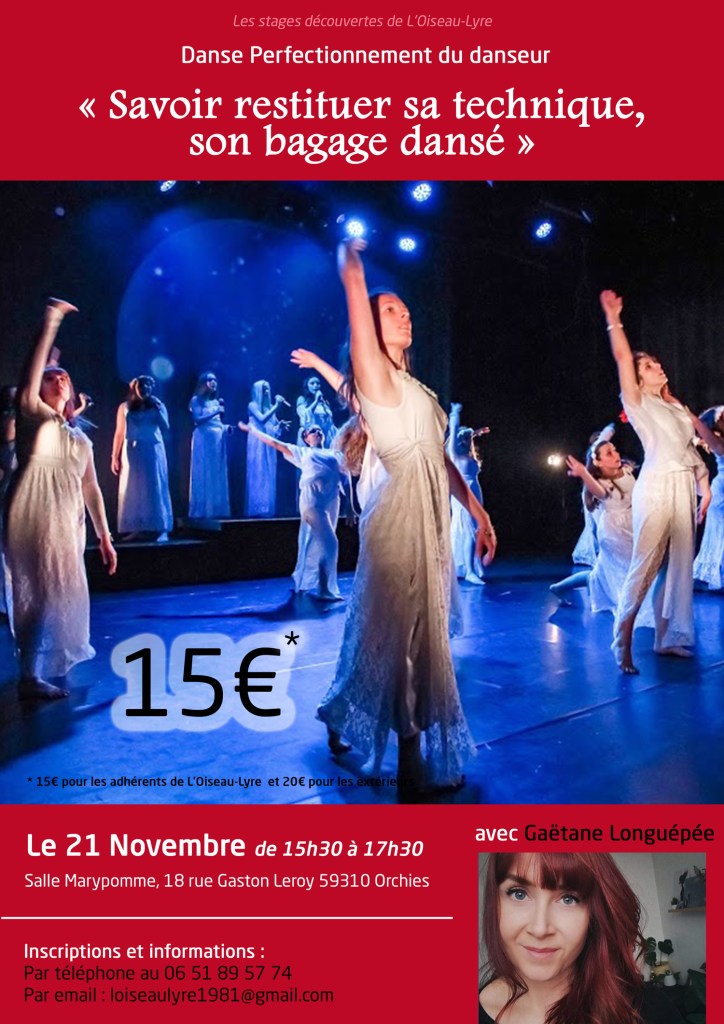 Cette année, notre animatrice Gaëtane Longuépée propose des stages réguliers « Perfectionnement du Danseur » qui se déroulent une fois par mois le samedi de 15h30 à 17h30.