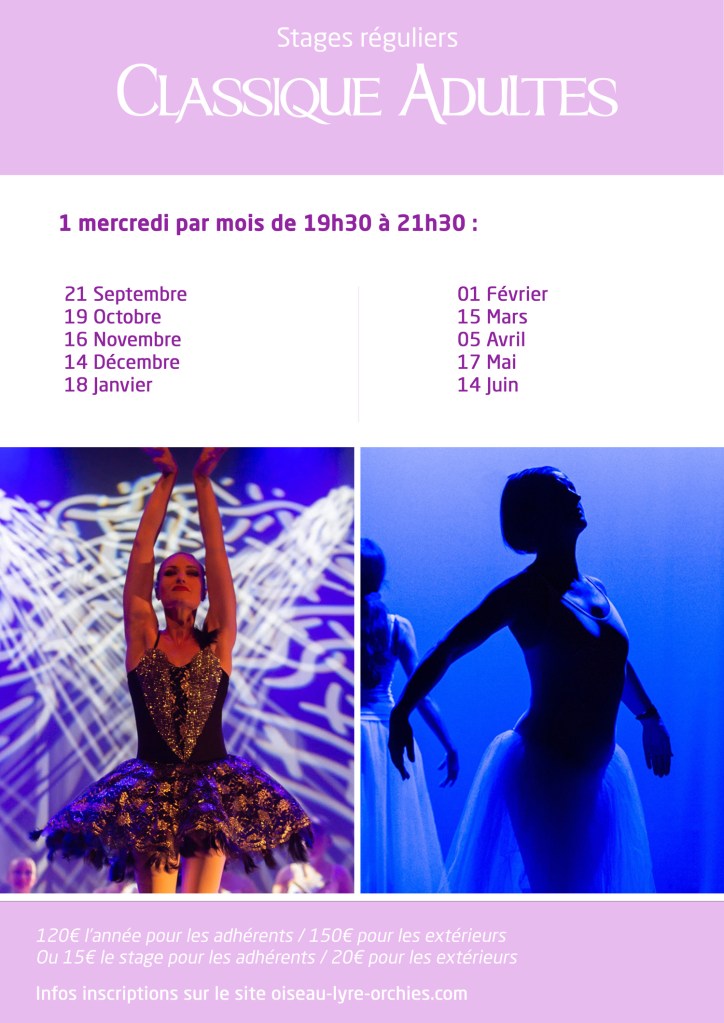 Vous avez envie de vous essayer à la danse Classique ? Vous en avez pratiqué il y a quelques années et avez envie de reprendre ? retrouver la sensation des pointes, des exercices à la barre, le tout à votre rythme ? Ce stage est fait pour vous ! Il est proposé par la talentueuse et bienveillante Barbara Lesur les mercredis de 19h30 à 21h30.