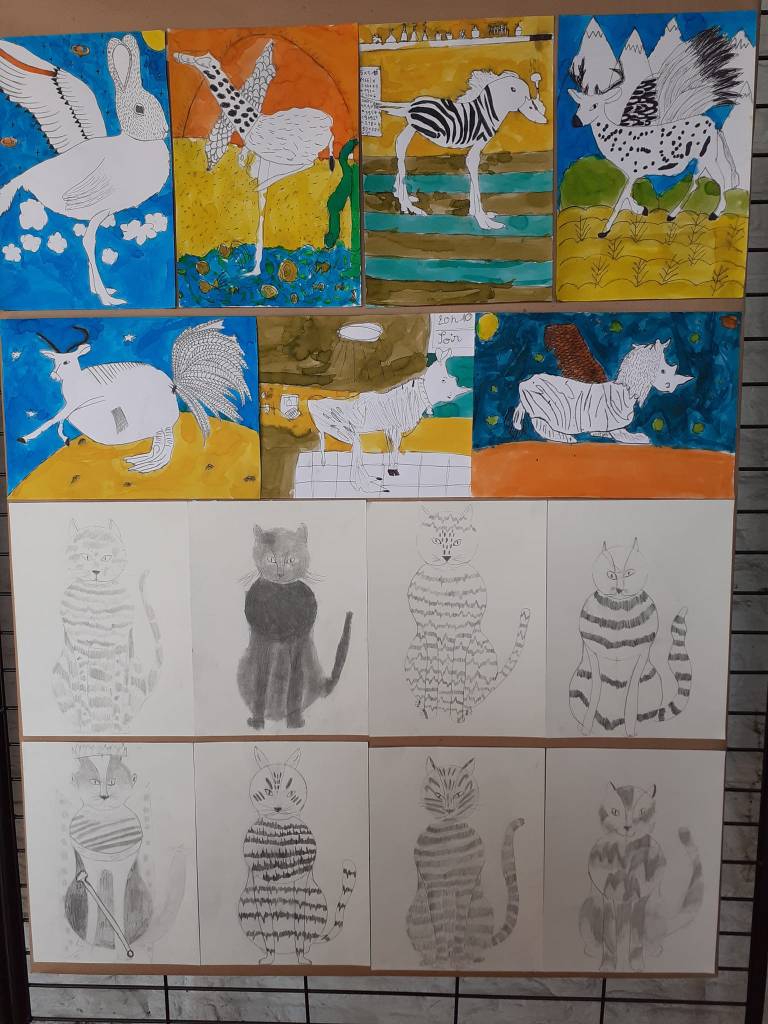 Les cours d’Art Plastique sont des cours pluridisciplinaire qui permettent de découvrir différentes techniques de dessin, peinture, collage, volume.